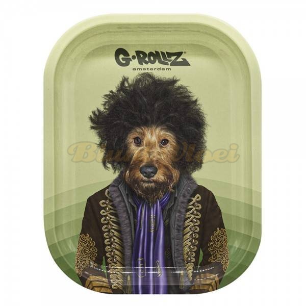 Voorzien van een groovy plaatje: een hond met het kapsel en de huzarenjas van Jimi Hendrix. Daarmee springt deze rolling tray in het oog. De illustratie ziet er natuurlijk hilarisch uit, maar vormt ook een eerbetoon aan de legendarische rockartiest!