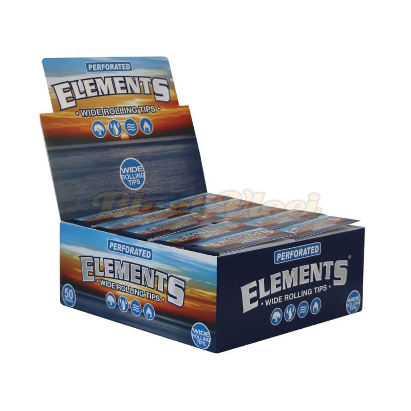 Tijdens het gebruik voorkomen ze dat er stukjes wiet of tabak in je mond komen, en kun je je joint tot het einde oproken zonder je lippen te verbranden. Een tipboekje bevat 50 brede, geperforeerde Elements tips. In een vol doosje zitten 50 boekjes met Elements brede filtertips.
