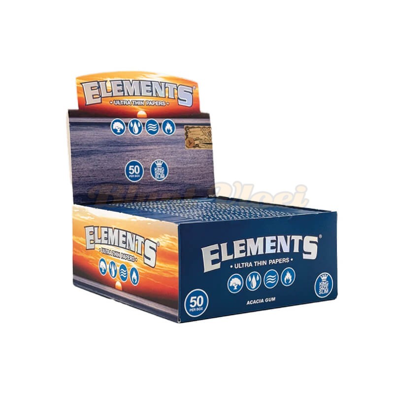 Een kruislings patroon als watermerk bevordert een langzame en gelijkmatige verbranding met weinig asvorming. Het verklaart waarom Elements Kingsize Slim vloei zo geliefd is onder connaisseurs. Elements werkt op het snijvlak van traditie en innovatie, gebaseerd op de vier oer-elementen. Water, vuur, aarde, wind. Dit vertaalt zich naar ongecompliceerde rolbenodigdheden, zonder heisa.